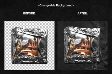 图穷联素材库 » 潮流做旧仿旧艺术锡箔纸包裹方形CD包装设计展示样机模板 METALLIC WRAP MOCKUP PACK