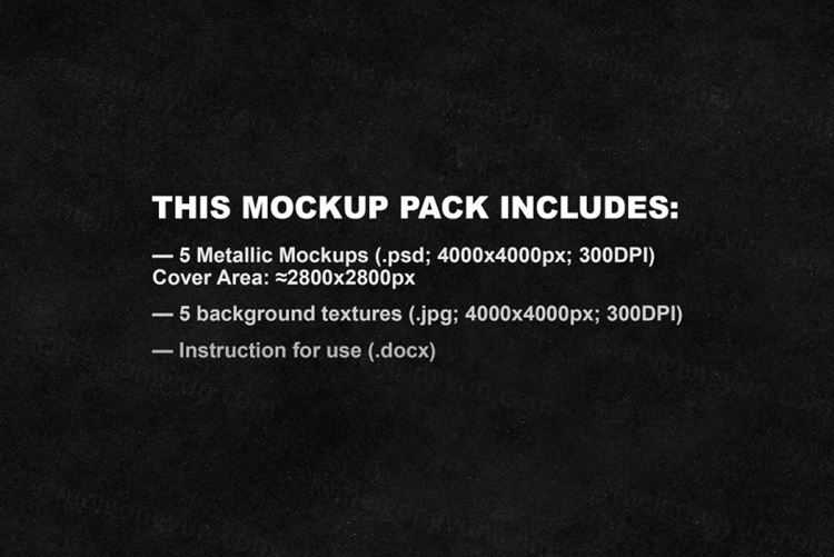 5 个金属模型 (.psd; 4000x4000px; 300DPI) 覆盖面积:2800x2800px