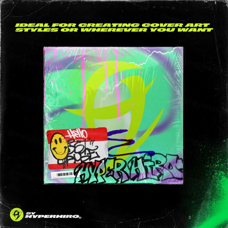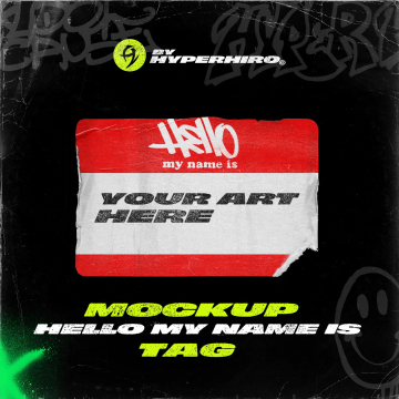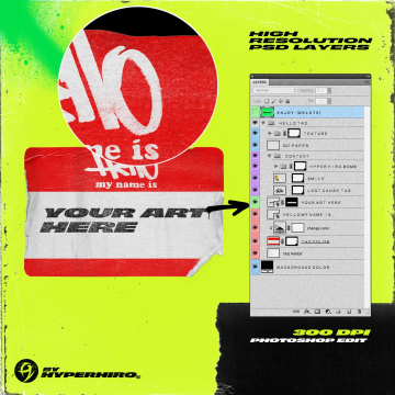 图穷联素材库 » 潮流复古做旧仿旧酸性艺术贴纸标签样机PSD模板 Mockup Hello my name is tag