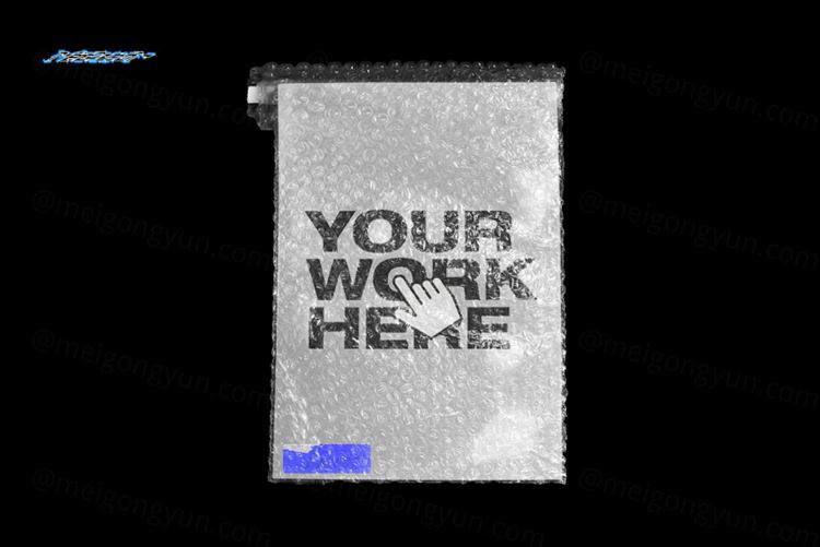 潮流复古做旧设计透明塑料泡沫气泡袋海报设计展示样机模板 Bubble Wrap Mockup