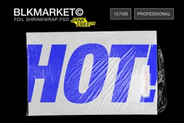 图穷联素材库 » 潮流透明金铝箔塑料压膜海报包装展示样机PS素材 Blkmarket – Foil Plastic Mockup