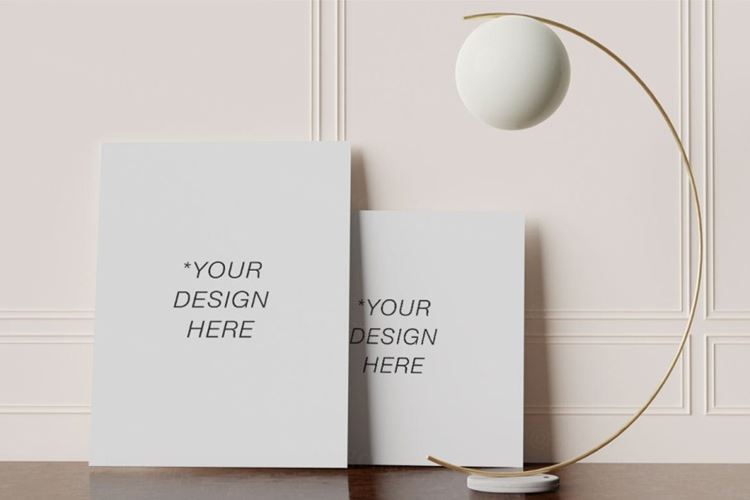 图穷联素材库 » 极简主义无框画布艺术海报展示样机模板 Frame Mockup with frameless canvas on floor