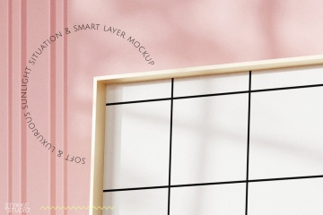 时尚极简主义粉色房间金色艺术画框画布展示样机模板 golden frame mockup pink room
