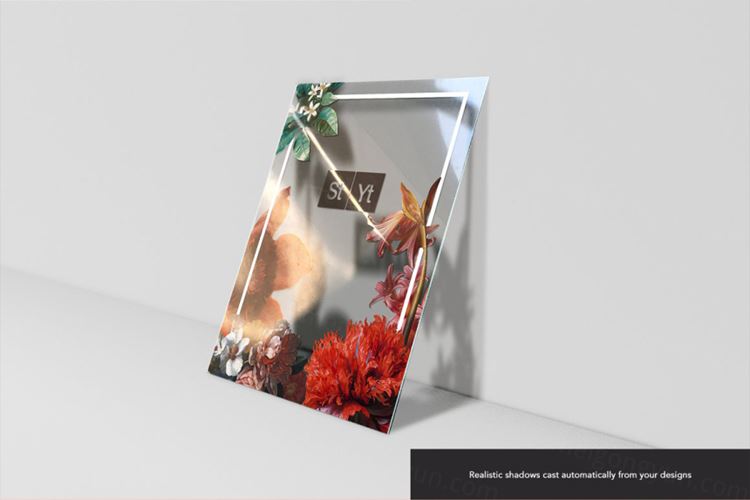 逼真的阴影投射、自定义有机玻璃板颜色和自定义反射意味着此样机模板将让您获得潜在设计理念的无限组合。