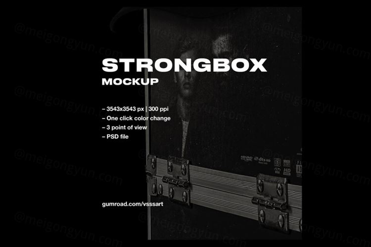 图穷联素材库 » 复古做旧艺术保险箱贴图展示样机模板 vsssart - strongbox mockup