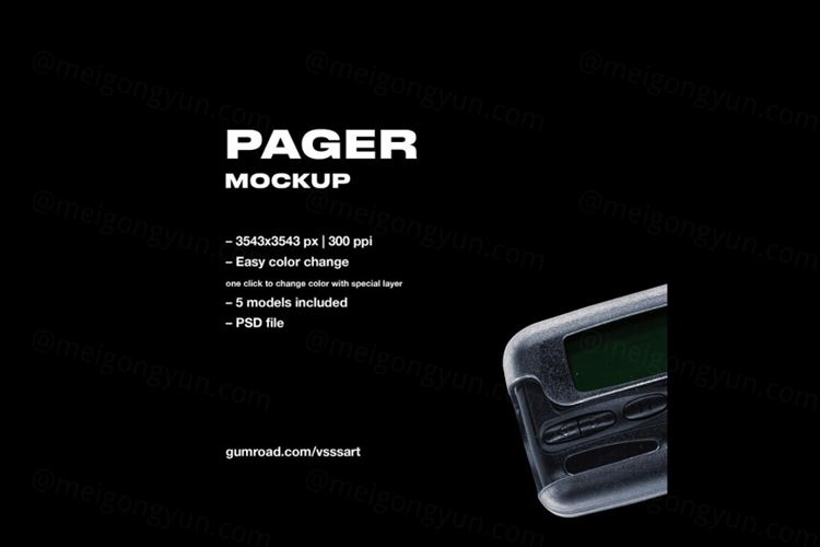 图穷联素材库 » 潮流复古老物件做旧艺术传呼BB机设计贴图展示样机模板 Vsssart - Pager Mockup