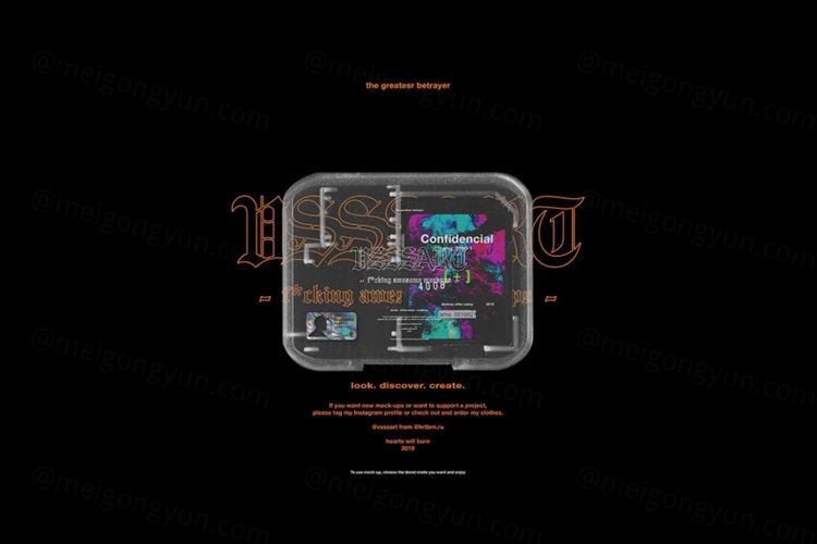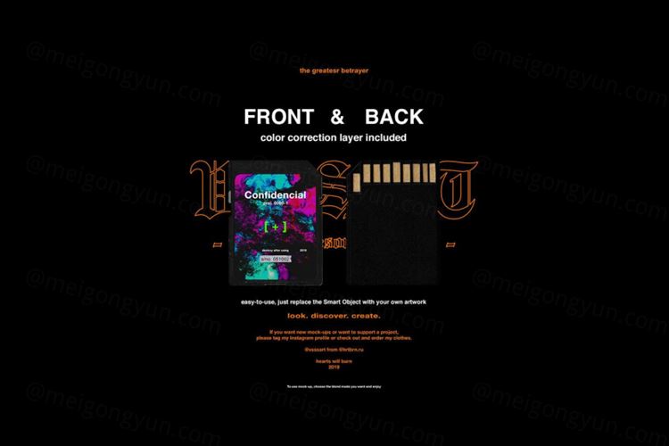 图穷联素材库 » 潮流复古老物件做旧艺术内存卡塑料包装盒设计样机模板 Vsssart - SD Card Mockup