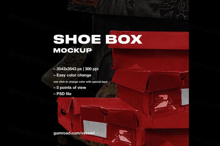 图穷联素材库 » 潮流复古废旧潮牌鞋盒包装设计样机模板 Vsssart - Shoe Box Mockup