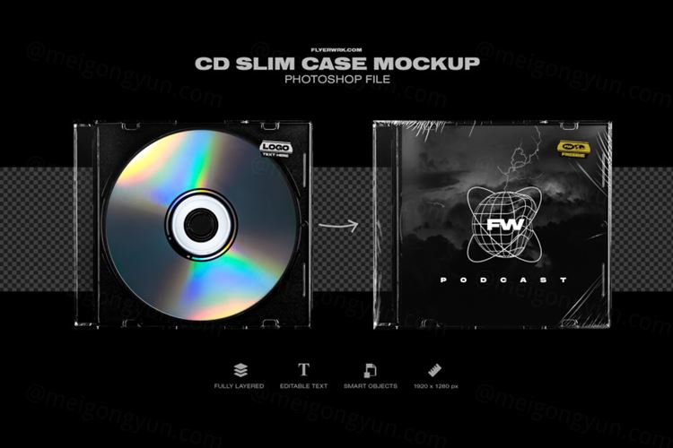 图穷联素材库 » 潮流潮牌音乐光碟包装盒设计样机模板免费下载 CD SLIM CASE MOCKUP