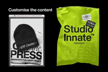 定制这个模型再简单不过了,非常适合初次使用 Photoshop 的用户和精明的街头服饰品牌。只需点击几下,您就可以以您选择的任何方向拖放您的品牌设计。只需坐下来,让模型自动扭曲和扭曲您的设计,以继承自然光和织物波纹。当然,您可以将包和背景颜色调整为您喜欢的任何颜色,同时更新包的内容。