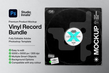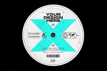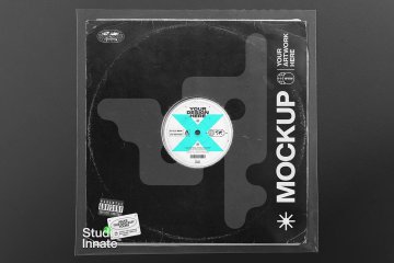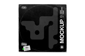 图穷联素材库 » 潮流做旧艺术废旧黑胶唱片纸袋包装设计贴图样机模板 Vinyl Record - Mockup Bundle