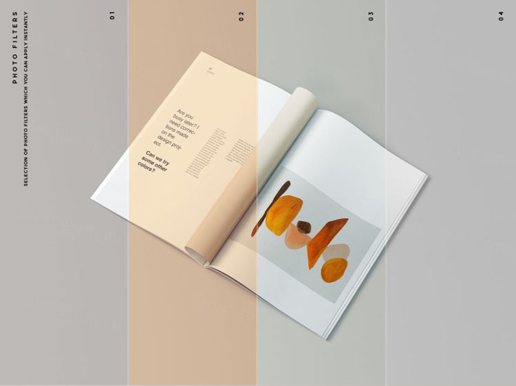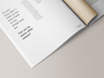 从所有可能的角度、视角和设置呈现的 A4 格式的杂志模型;打开、关闭、内部、盖子和封底。高级详细的 Photoshop 文件为用户提供了出色的编辑能力,以获得异常逼真的结果。