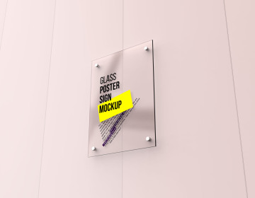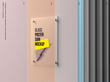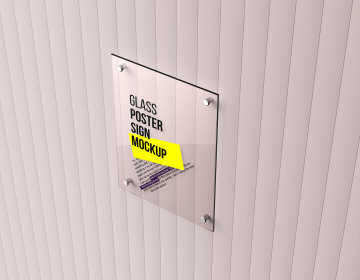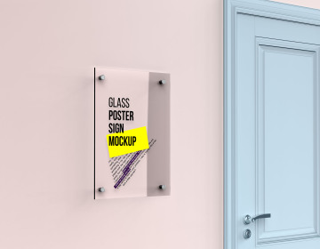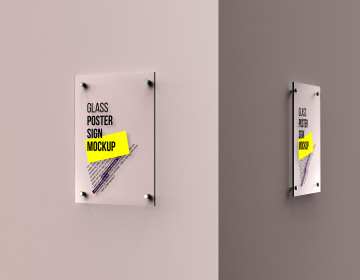 图穷联素材库 » 7款高质量透明玻璃亚克力海报招牌贴图展示样机模板 Glass Poster Mockup