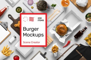 图穷联素材库 » 高质量汉堡快餐食品品牌餐饮包装设计提案样机模板 Burger Mockups - Scene Creator