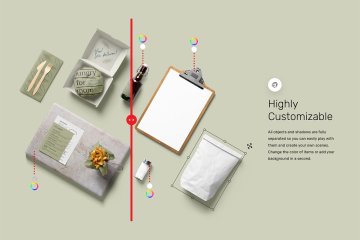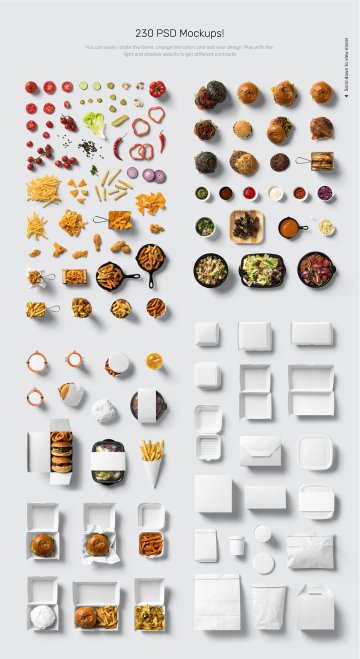 使用我们的汉堡模型包让您的餐厅展示更具吸引力!所有对象和阴影都完全分离,因此您可以轻松地使用它们并创建自己的场景。旋转项目,更改颜色并添加您的设计。使用光影不透明度来获得不同的对比度。只需将设计替换到智能对象层,点击保存,就完成了。你一定会喜欢的!