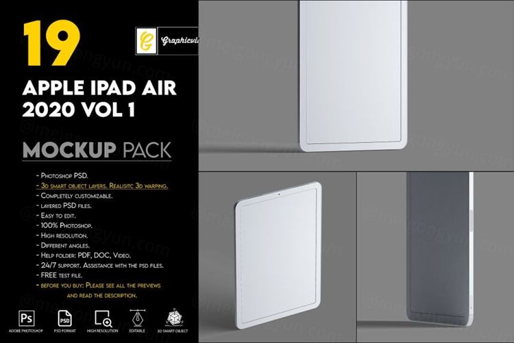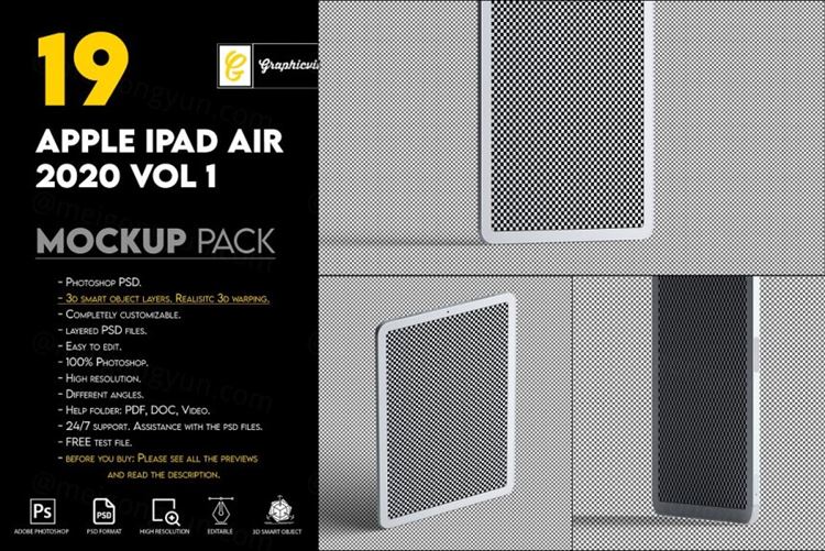 图穷联素材库 » 三维渲染苹果iPad全视角展示样机PSD模板 Apple iPad Air 2020 vol 1