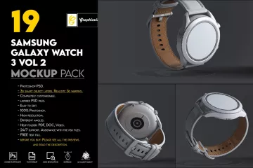三维渲染三星智能手表全视角UI设计贴图展示样机模板 Samsung Galaxy Watch 3 Mockup