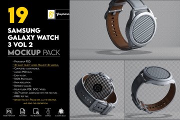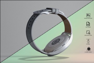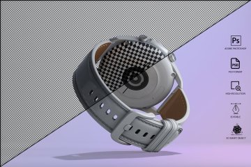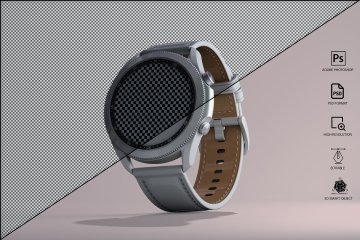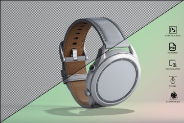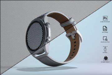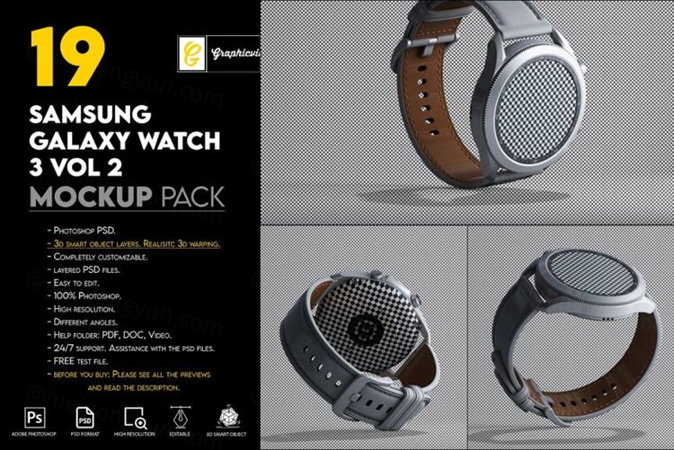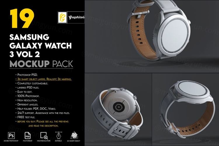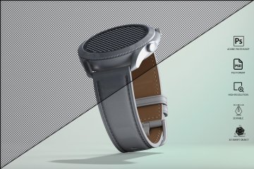 图穷联素材库 » 三维渲染三星智能手表全视角UI设计贴图展示样机模板 Samsung Galaxy Watch 3 Mockup