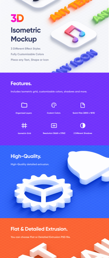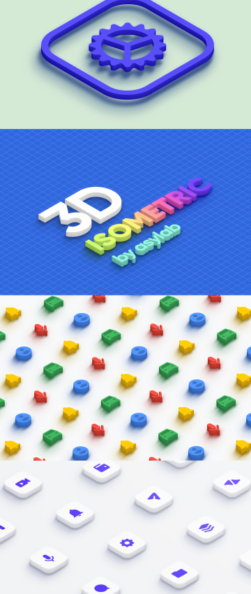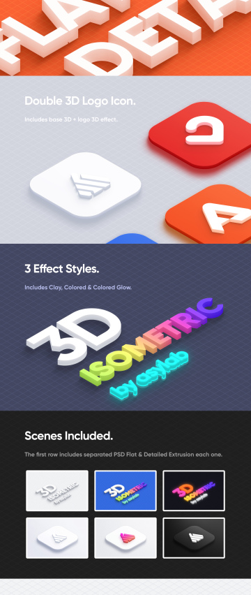 使用这些具有 3 种不同效果样式的等距模型创建出色的设计。还包括用于您的徽标演示的双 3D 徽标图标。放置任何文本、形状、图标或徽标以使其成为 3D 等距。