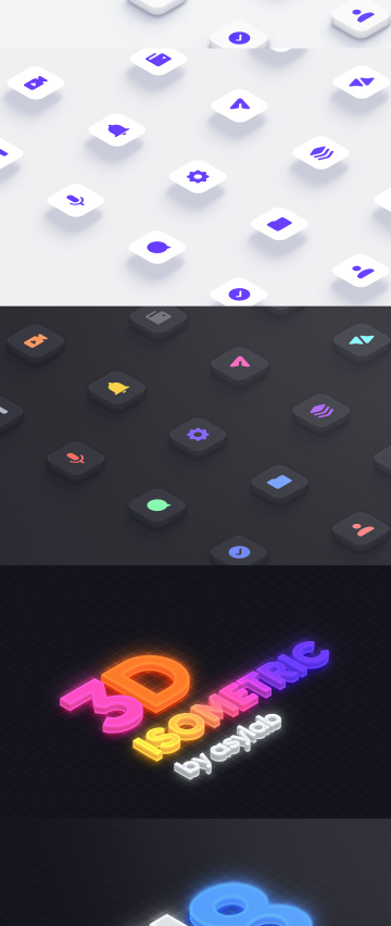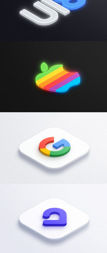 - 双 3D 标志图标(只有粘土效果有扁平挤压)。