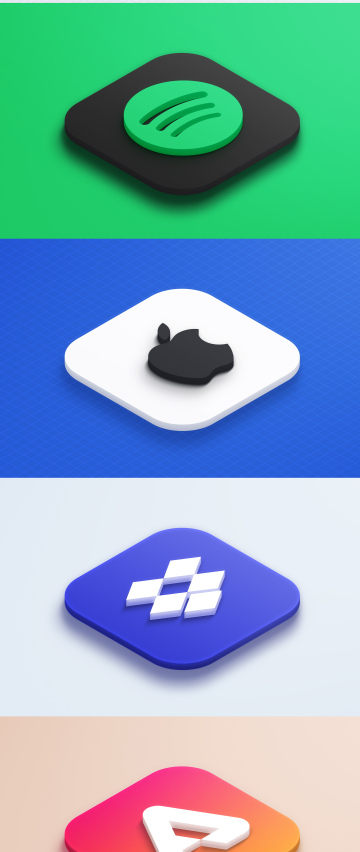 图穷联素材库 » 等距透视三维立体APP图标LOGO设计提案样机PSD模板 Isometric 3D Mockups