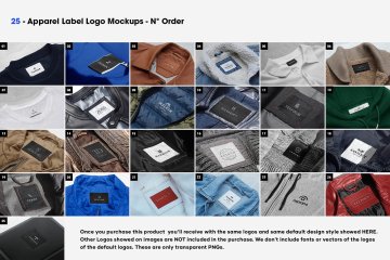 我们新的第一个捆绑 25 个服装标签和标签样机,这个捆绑包带来了许多不同的标签和标签变体。包括 2 种效果平面和刺绣,具有最高质量的细节。您可以轻松更改和放置自己的设计 | 使用智能对象单击几下即可获得图像。