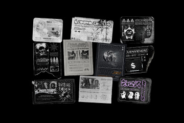 图穷联素材库 » 新复古酸性艺术颓废做旧标签贴纸样机展示模板素材 Stickers mock up 2022 FULL
