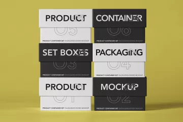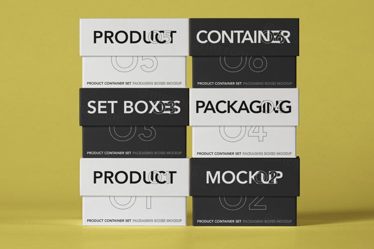 图穷联素材库 » 一堆鞋盒礼品盒包装盒产品包装设计展示样机模板 Box Product Psd Packaging Mockup