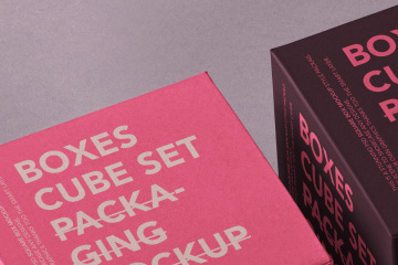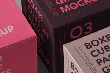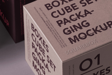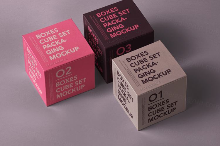 图穷联素材库 » 正方形纸盒包装盒设计提案展示样机模板 Boxes Cube Psd Packaging Mockup Set