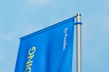 户外道旗旗帜宣传设计图提案样机模板 Outside Branding Psd Flag Pole Mockup