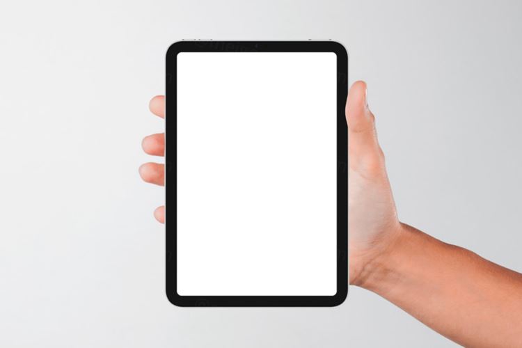 图穷联素材库 » 手持苹果平板网页UI设计app展示样机模板 Hand Holding Psd iPad mini Mockup