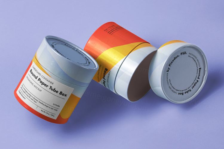 图穷联素材库 » 圆形纸盒包装设计提案样机PSD模板 Round Cardboard Psd Box Mockup