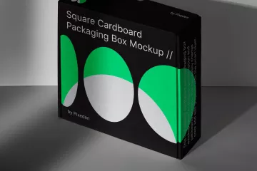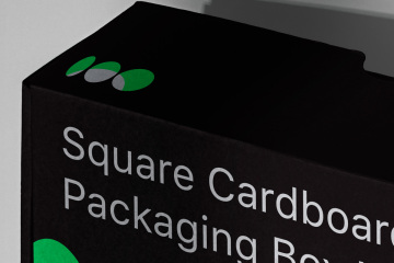 图穷联素材库 » 优雅的方形纸盒包装盒设计展示样机PSD模板 Cardboard Square Psd Packaging Mockup