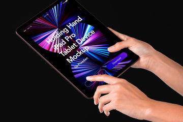 图穷联素材库 » 手持苹果平板网页APP设计UI贴图展示样机模板 Hand Holding Psd iPad Pro Mockup