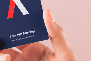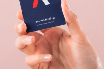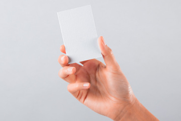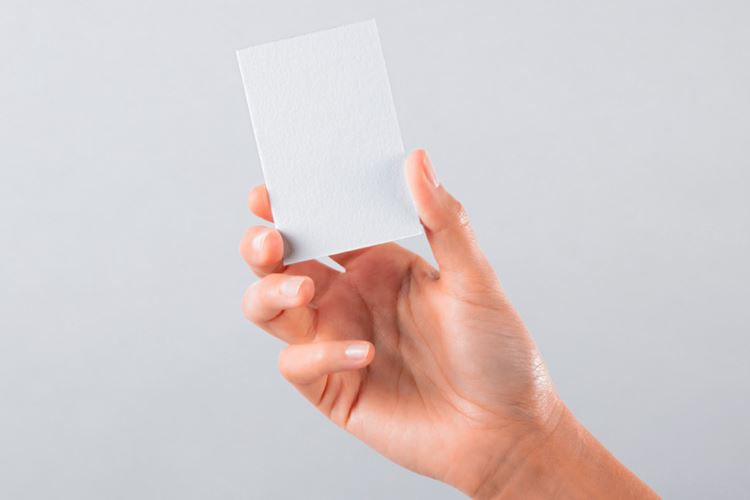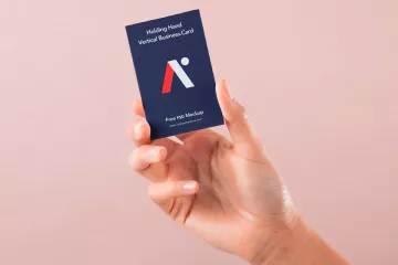 图穷联素材库 » 手持名片品牌设计展示样机模板 Hand Holding Vertical Psd Business Card Mockup