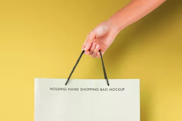 图穷联素材库 » 手提购物袋纸袋品牌包装设计提案样机模板 Hand Holding Psd Shopping Bag Mockup