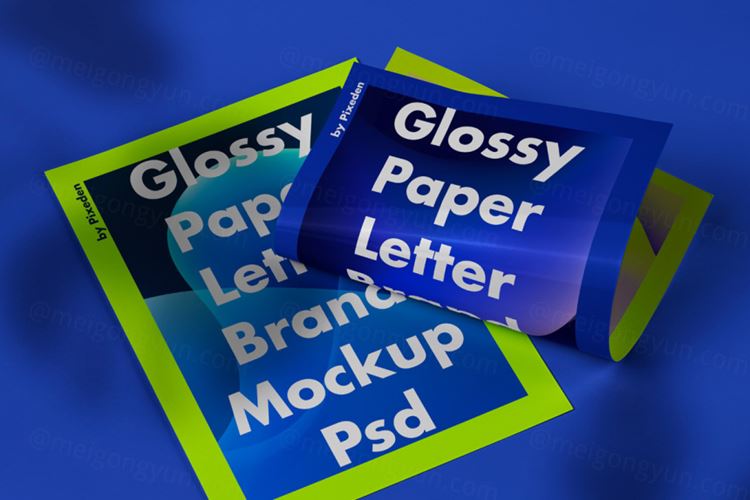 图穷联素材库 » 光面单页传单海报设计贴图展示样机模板 Glossy Letter Psd Paper Brand Mockup