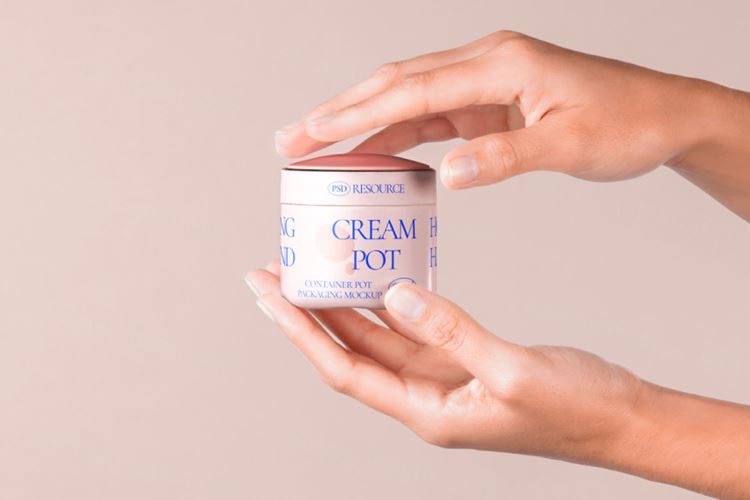 手托奶油瓶化妆品品牌包装设计展示样机模板 Hand Holding Cosmetic Psd Cream Mockup