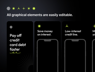 该模板具有最大的灵活性,因此所有图形元素、颜色、模型等都可以同时自动调整到所有尺寸。- 零时间创建您的资产!