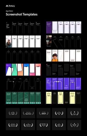 此模板涵盖所有所需尺寸的所有 Apple Store 和 Google Play Store 屏幕截图。