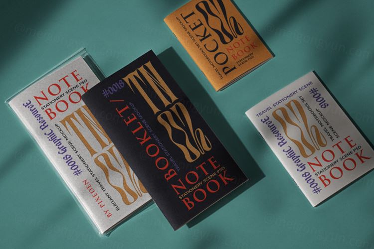 图穷联素材库 » 旅行笔记本手记封面设计展示样机模板 Travel Notebook Psd Mockup Set