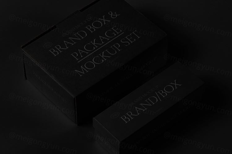 图穷联素材库 » 鞋盒纸盒包装设计提案展示样机模板 Branding Psd Box Mockup Set Scene