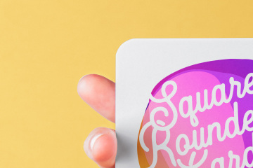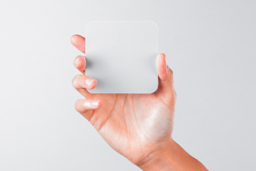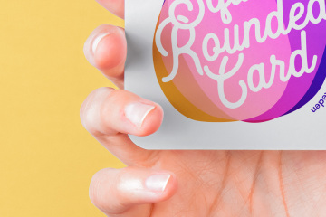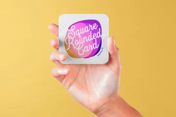 手持圆距卡片品牌设计提案样机模板 Hand Holding Rounded Psd Square Card Mockup