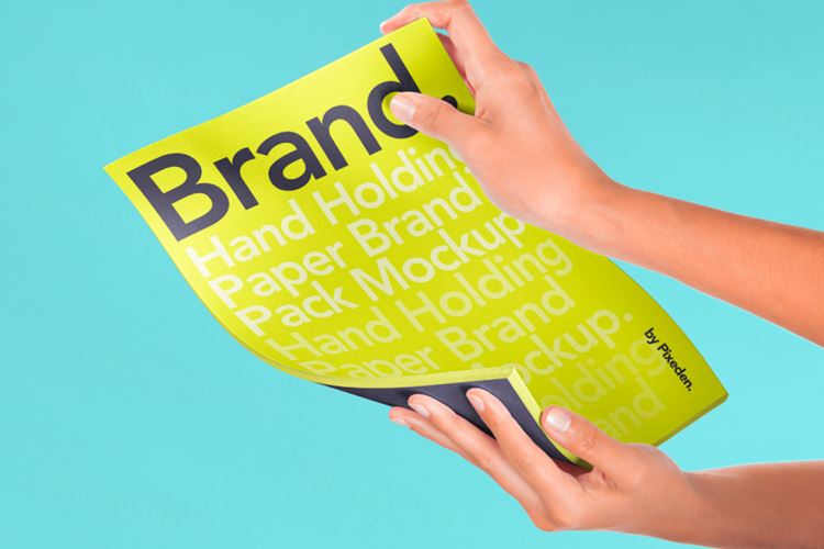 图穷联素材库 » 手持传单单页宣传单设计展示样机模板 Hand Holding Psd Branding Paper Pile Mockup
