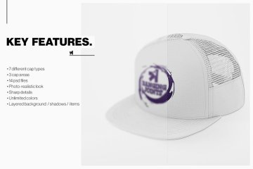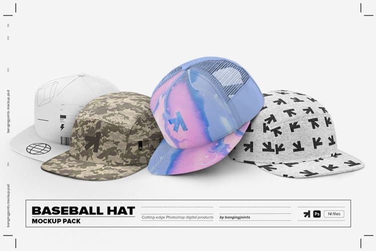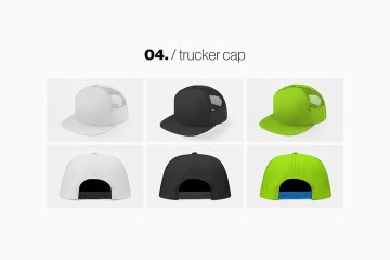 图穷联素材库 » 街头棒球帽运动品牌设计提案展示样机模板 Baseball Hat Full Cap Trucker Mockup