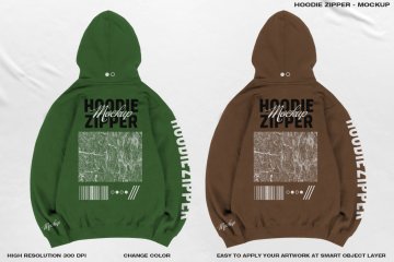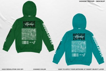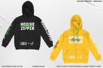 “Hoodie Zipper - Mockup”这个模板可以让你做模型。具有高分辨率 300 DPI,易于更改颜色,并且易于在智能对象层应用您的作品。文件类型 PSD(最小 cc2014)