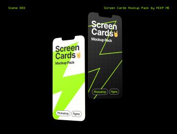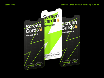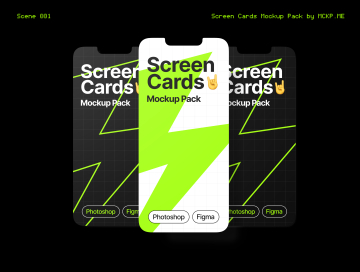 Screen Cards Mockup Pack 是一款专为移动 UI 演示而设计的高质量包。这个包包括 9 个 Figma 和 Photoshop 文件格式的场景。