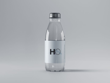 小型玻璃水瓶样机,可以在真实的环境中为您的投资组合或客户展示呈现您的品牌。该文件为PSD格式,可以使用随附的帮助pdf文档轻松进行自定义。
