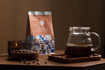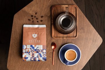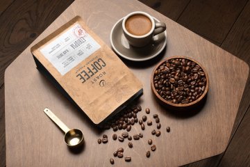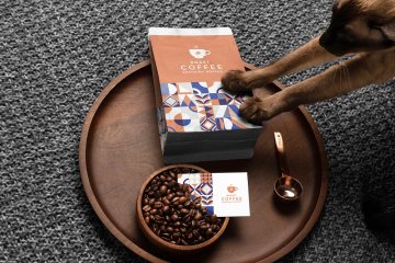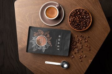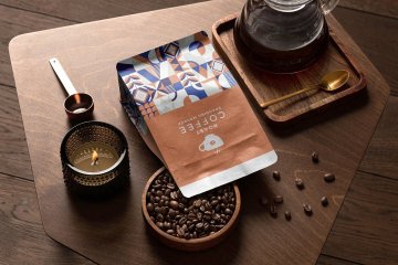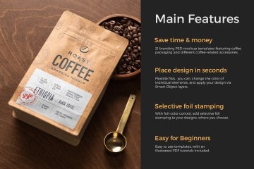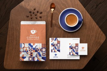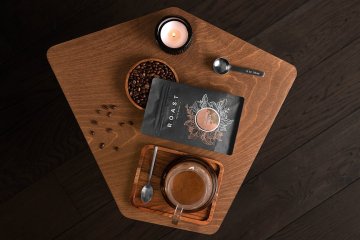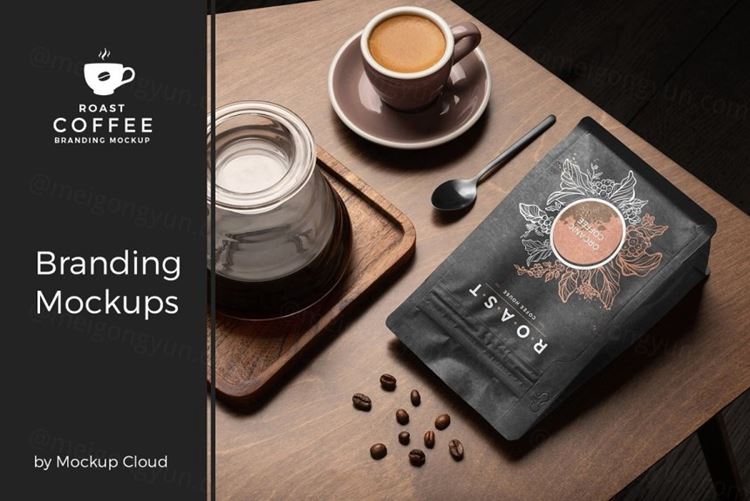 图穷联素材库 » 高端手磨烘焙咖啡馆门店品牌产品包装设计样机模板 Roast