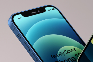 图穷联素材库 » 漂浮的苹果12高级阴影APP设计UI提案样机模板 Gravi